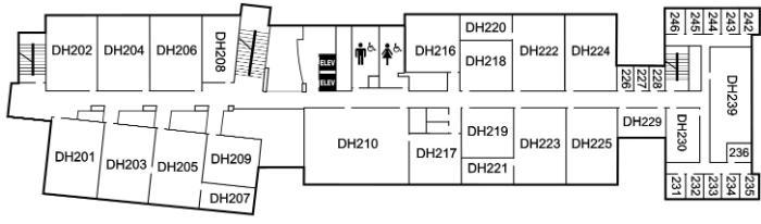 - Faculty Offices - At the end of the classroom hallway. Rooms DH226 through 246.