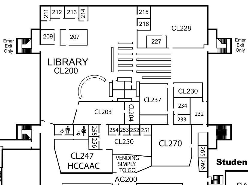 - Library - CL200; make a left at the top of the stairwell and then right.