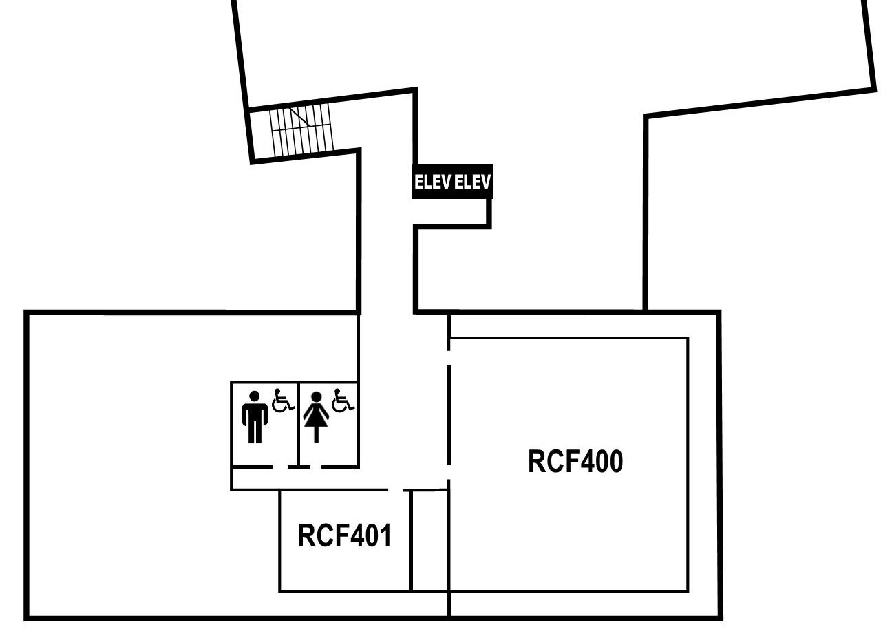 RCF401 - from the elevator, turn immediately left. RCF401 is on the back side of the lobby.